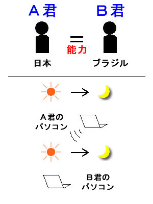 前回の内容をおさらいすると、 1.発電所近くにデータセンターを建設する事に依り、本来電気のまま送信すれば抵抗に依りロスが生まれる所を、データに置き換える事でロスなく地球の裏側にまで送り届ける事が出来るようになる 2.Googleデータセンターはその他に比べ、エネルギー効率がとても良い 3.Googleは電力の無駄を無くし、間接的に電力、直接的にはコンピューターエネルギー会社となるであろう というものだ。 これは僕がtwitterでフォローしている渡部さんの発言を僕なりに書き直したまでなので、最新の情報を知りたければ彼をフォローする事をお勧めする。 以下リンクより前回エントリにざっと目を通しておいて頂ければ、ご理解頂け易いと思う。 【前回エントリ:Googleはエネルギー会社?】 http://takahirosaito.blog-sim.com/Entry/21/ これを受けて今回は、電力という視点に立って、僕の疑問を紹介する。 クリーンな発電と言うと、何を思い浮かべるだろうか? 原子力や火力を挙げられる方は少ない。恐らく風力や、太陽光に依るものだろう。 特に昨今、太陽光発電はその注目を一身に背負っている。 しかし僕の疑問も、この太陽光発電へと向けられる。 「太陽光で発電し、その電力で部屋に明かりを灯す」 僕はここに、鼻先についた埃が視界に入るくらいの違和感を感じる。 太陽光自体が文字通り明かりなのだから、それをそのまま使う事は出来ないか? もちろん電力の用途は様々であるし、太陽光に依る電力はその他の事へ大部分が使用されているのかもしれない。 僕が言いたいのは、 『仕事するのに明かりが必要なら、仕事自体を明るい場所へ移せばいいじゃない』 という事である。 例えば、A君とB君の仕事に関する能力が同じとして、両社は十分コミュニケイト出来るとする。A君は日本に在住し、B君は『日本の反対はブラジル』とよく言われるので、ブラジルで生活している事とする。 もうお解りのように、仕事がデータを取り扱うものだとすると、業務をネット上で共有する事が可能だ。 これに依り、太陽の光が届く日中のみ作業を行う事が出来る。 つまり前回のGoogleデータセンターとは逆で、「太陽を追い掛ける人々」(※渡部さんの言葉から引用)というものが生まれるかもしれない。 オフィスを抱える企業は日中でも電灯を使用しているが、これが今言われている「ノマド・ワーキング族」同士なら、現在僕がこれを執筆しているように電灯無しでの作業が可能となる。 オフィスを持つ大企業でも、明かりのための電力消費は抑えられるはずだ。 逆に日中は暑くて仕事にならないという方は、明かりのための電力消費を抑えるという観点からは全くの逆説となってしまうが、同様に夜間作業をしたいというブラジルの方を見付ければ良い。 作業効率が悪くて結局パソコンの電力消費が嵩むなら、明かりを使ってでも涼しい夜間に作業を行った方が総電力の効率は高まる。 お気付きの方いらっしゃると思うが、これは左程重要な事柄ではない。 あくまで今後電力量が更に重要となるなら、こういう省エネもあるよと申しているまでである。 しかし、「これが可能だ」という事がとても重要だ。 将来ナニが「どこでもドア」のように瞬時に移動してしまうか分からない。 もし今回の事例のように電力への関心が非常に高まれば、同環境を求める人々を引き合わせるといった、世界規模のエージェントも誕生するだろう。 また僕が個人的に期待する部分として、労働力の確保というものがある。 僕は、日本政府は可能な限り早く移民を受け容れるべきと感じるが、行政というのはいつでも「遅い」。 そんなものを待つよりは、可能なとこから業務を労働人口へ配分していけば良い。 上記の様なエージェントが誕生すれば、日本は「労働生産国」として、再び日の目を拝める日が訪れるだろう。 PR |
